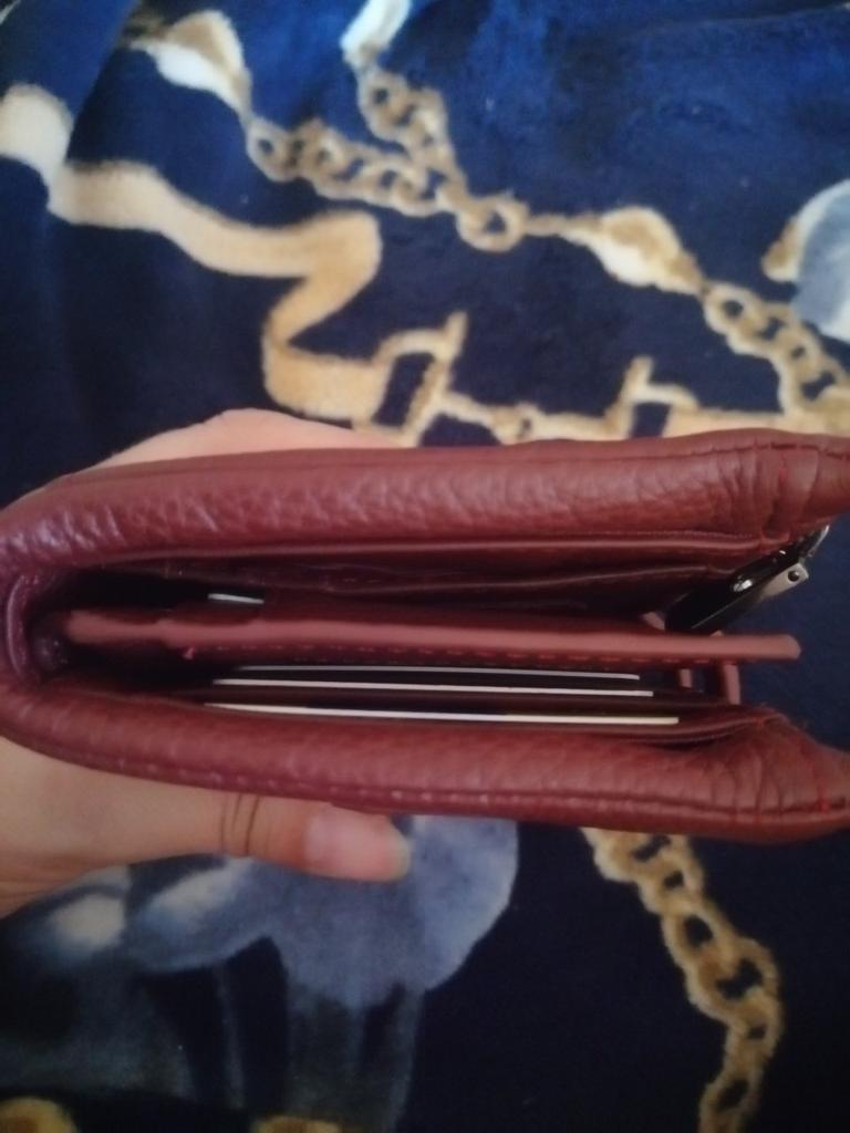 The parcel went for almost a month (9.07 ordered-2.08-received) was tracked to the post office! . The quality of the material and seams is good! The color saturation is different in the base material and zippers. This is not critical, but upset (. Advantages: quality of seams and general equality of the wallet), number of card slots, quality of zippers. Disadvantages: mismatch of skin color saturation and lightning, compartments for dibnots seem inconvenient. Maybe when using, I will have a different opinion. Overall satisfied with the wallet. I recommend the seller.