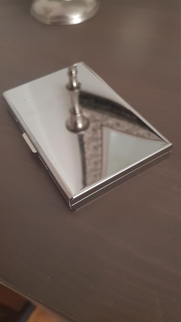 I had 5 of similar metal card holders, and all these without plastic hinges doesn't have a guide or stabilizer for the allignment of the two halves. Wich means that it opens when it's dropped. This is the most squared one I ever saw, and it will wear a mark in jeans or other tight clothes and eventually wear holes in the fabric.