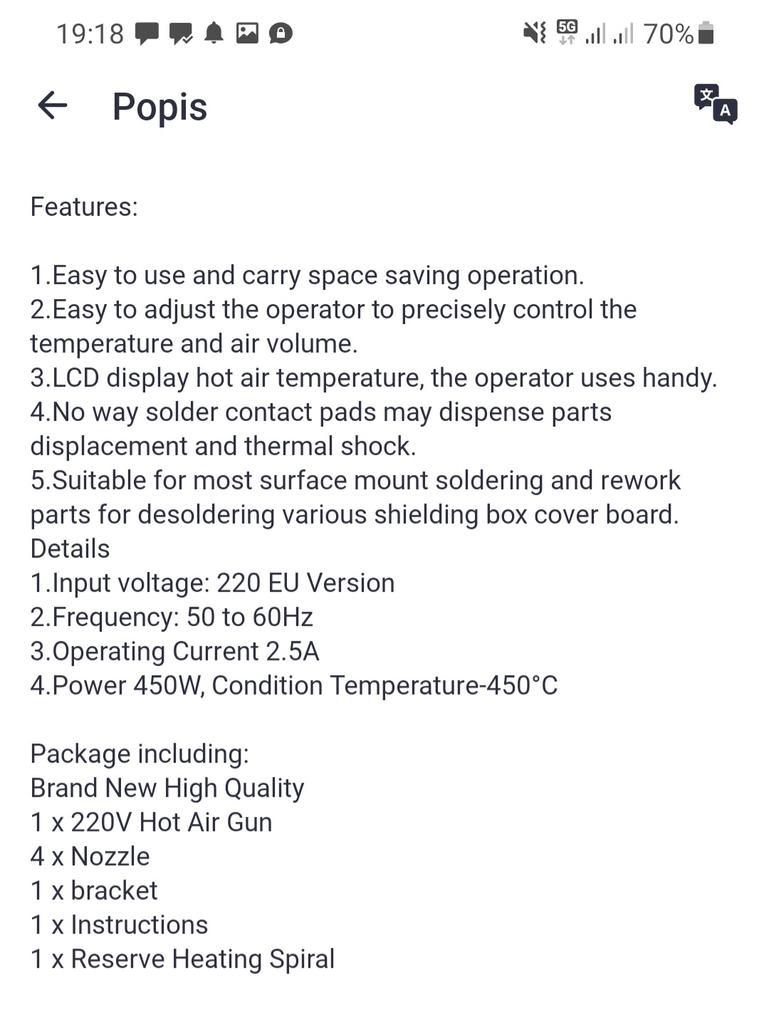 Seems good. Haven't put it to work, but I tested it. Keep in mind that you cannot set the temperature independtely, you have to set according to the air speed. If you change air speed while you work, you have to set again the temperature