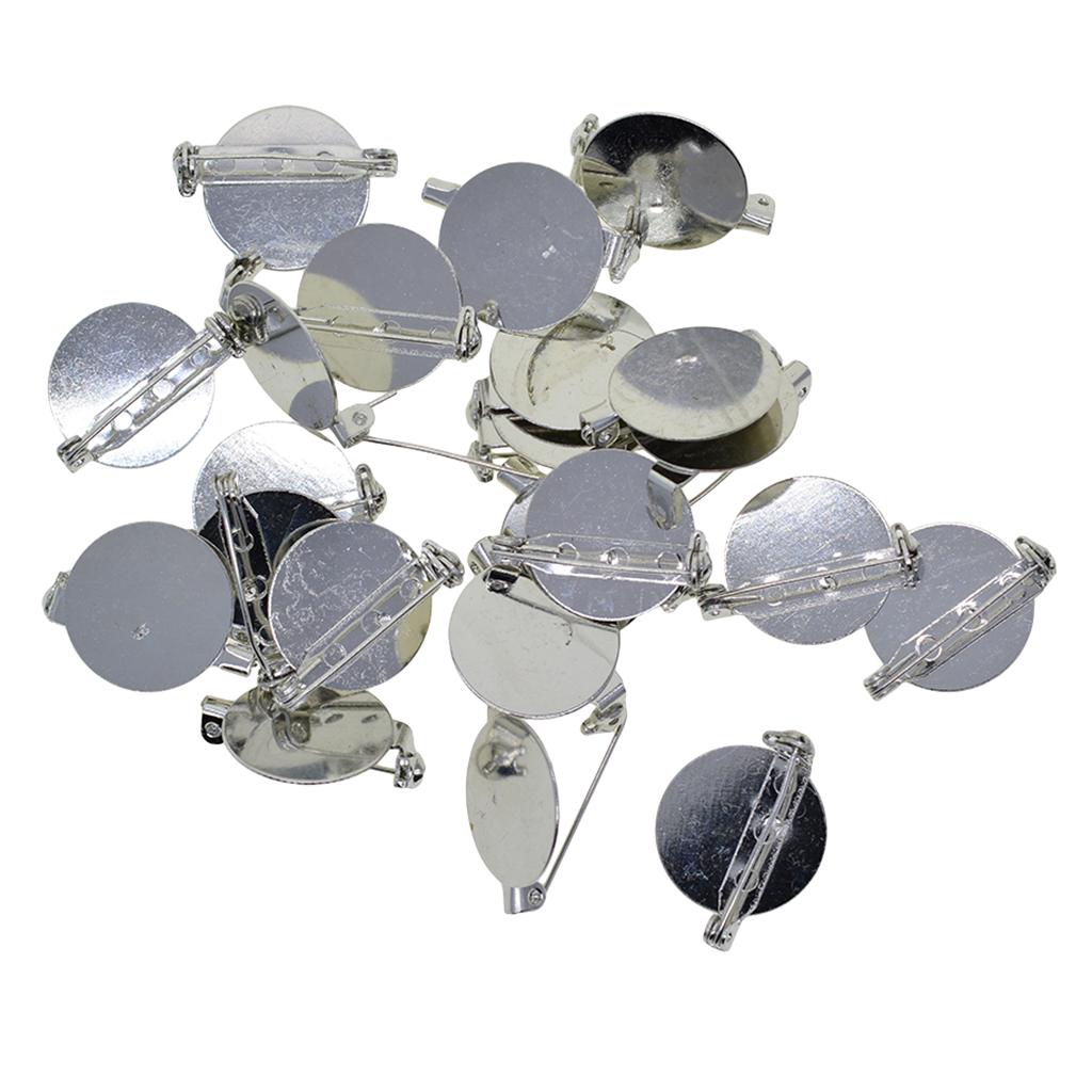 20 Pieces Round Brooch Base Blank Tray Safety Pins Bronze