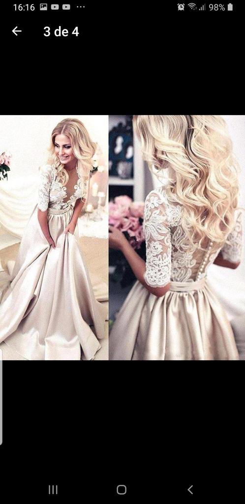 Joom online store offers high-quality products at low prices. Champagne Satin Wedding Dresses Lace Top A-line Bridal Gown Half Sleeves: Joom prices are the lowest! Real reviews with photos! Do you want it to be even more affordable? Follow our discounts and special offers!