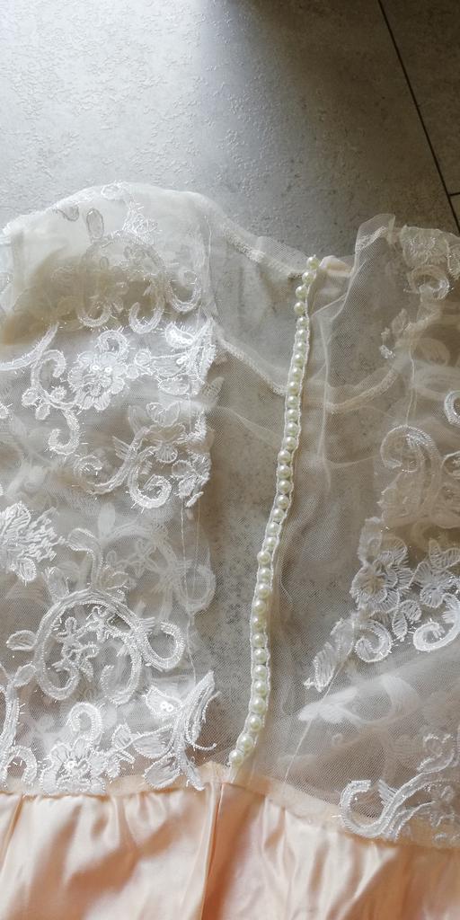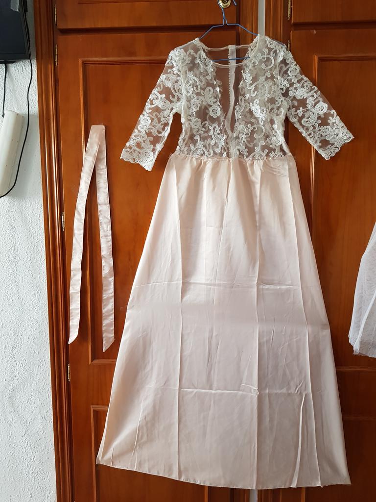 It does not look ANYTHING like the one in the Photo on the JOOM website, nor did the color I ordered CHAMPAGNE And a strange peach color arrived, it lacks flare in the very narrow skirt, the fustan or petticoat does not fit, this is a ruin with wedding SUITS or party they don't give one, they upload some photos and they send you what they want for God's sake this is not like that OK.