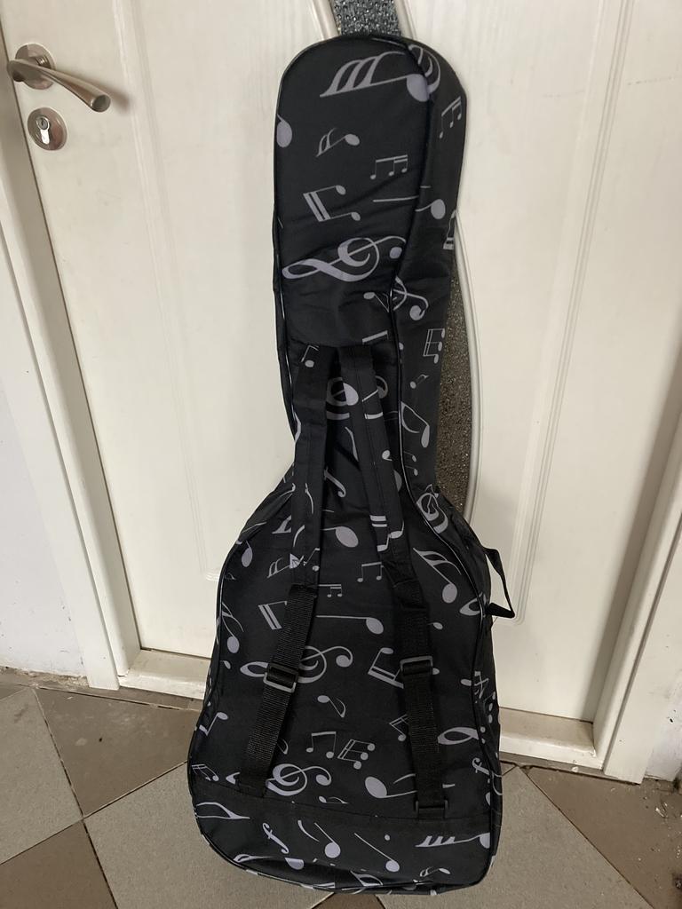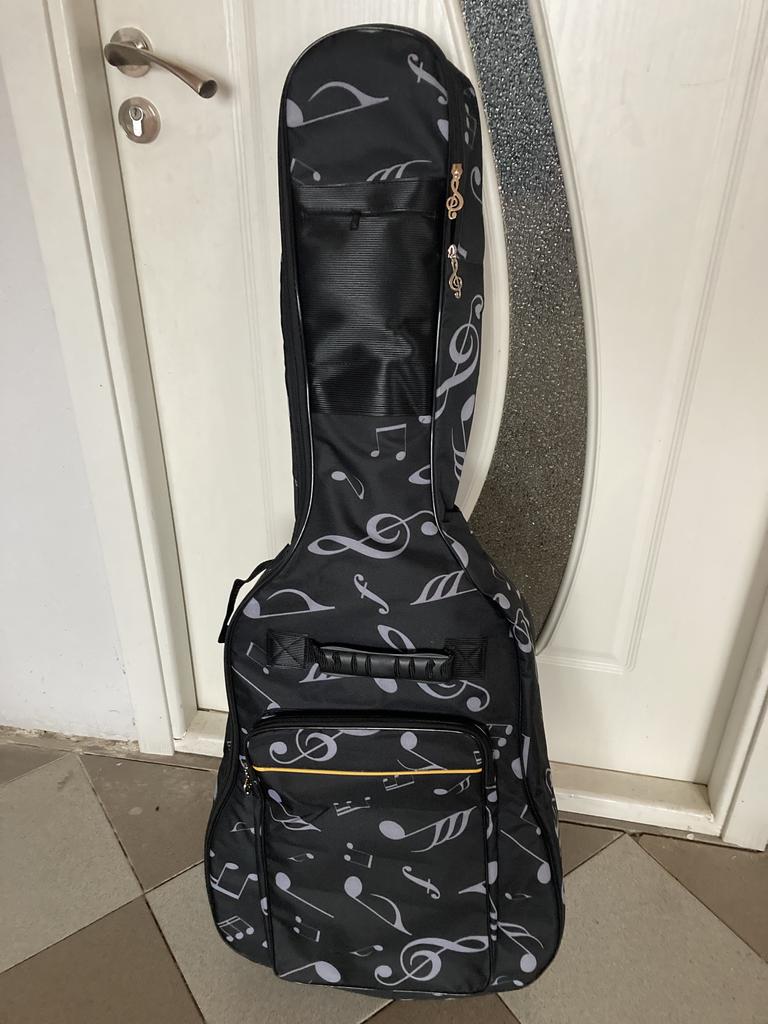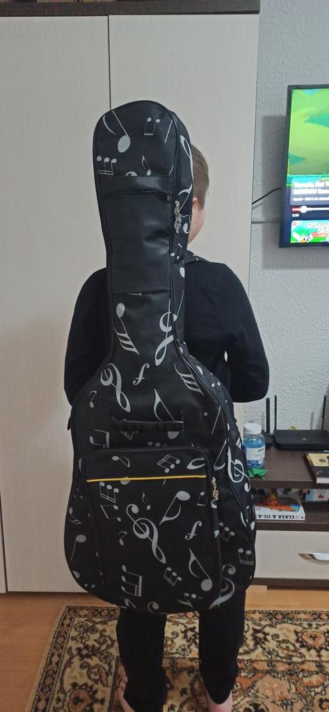 very high quality, it is only good for classical guitar, sizes 104 cm length / 42 cm width. the external pocket fits both the map and the chair. the child is happy :)