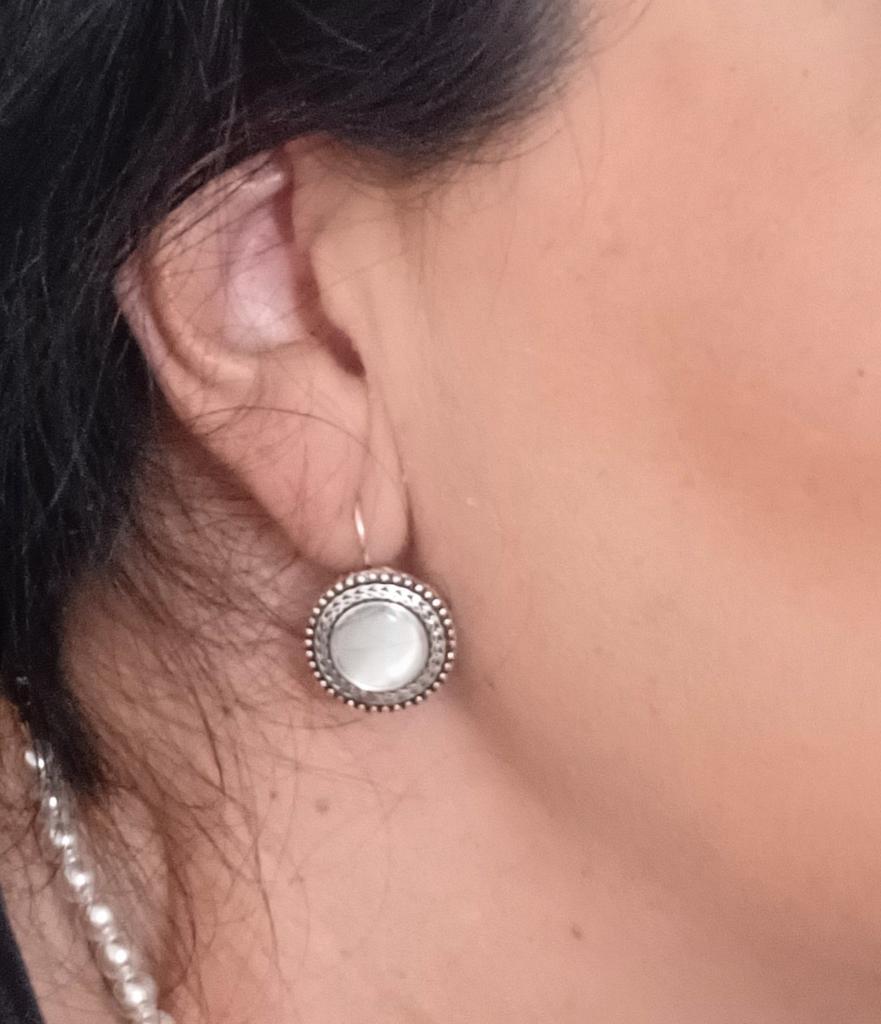 These earrings are very shiny silver. Lovely style. I have longer hair and they are a big enough size so they are so they are quite visible to others. Fast shipping. Certainly would recommend these earrings.