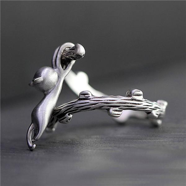 Personality Design Cat Climbing Tree Branch Finger Rings Silver Color Adjustable Jewelry — buy online with free worldwide shipping!