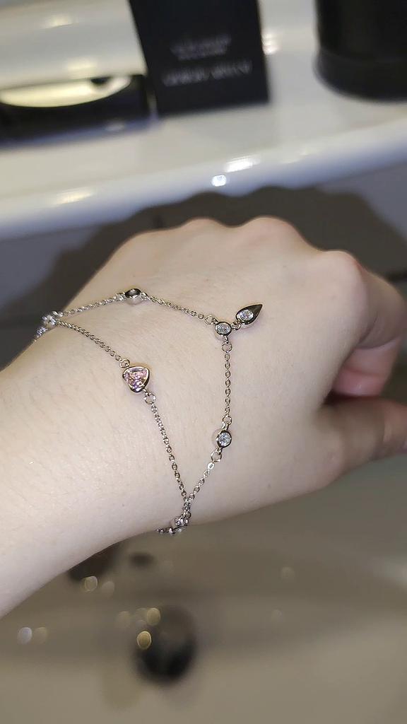 BAMOER Romantic New 925 Sterling Silver Sweet Heart Pink CZ Double Layers Bracelets — buy online with free worldwide shipping!