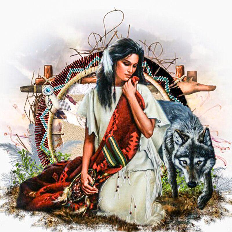 Diamond Painting Cross Stitch Girl with Wolf Needlework Diamond Embroidery Full Diamond Decorative