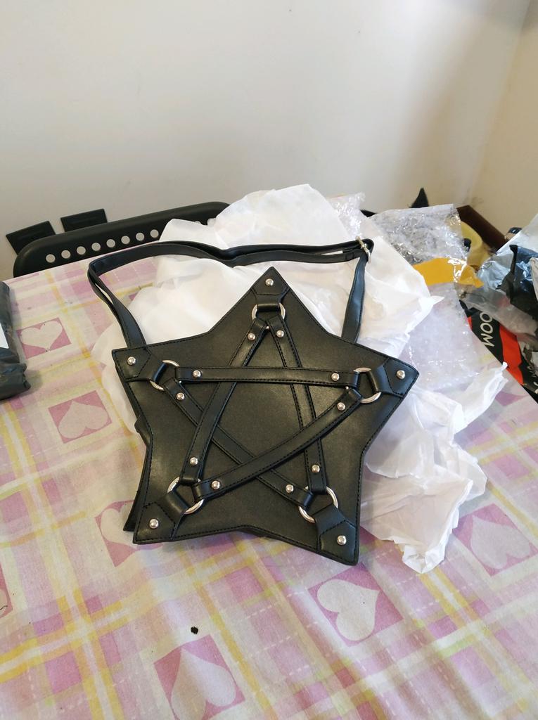 Dark Gothic Pentagram Shoulder Bag Unisex Punk Designer Casual Totes Women Retro Handbag Gifts Black — buy online with free worldwide shipping!