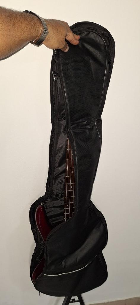 Excellent case for bass guitars, such as precision or jazz bass. Perfect fit for my homemade precision bass. The quality is excellent! The zippers are good. In the pocket fit: a belt, a bass wire and a pedal "compressor" from kokko. In general, I recommend the cover