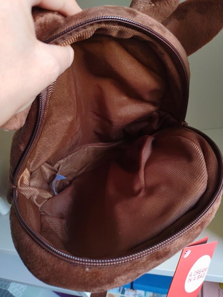 The backpack is very cute and soft; quite well made. It has no defects, and there's plenty of space inside the two pockets. Overall satisfied with the product.