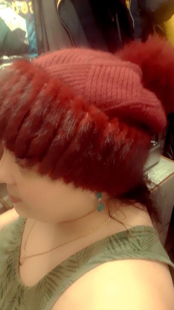 The hat is nice, but after opening it, the mink looked kind of flattened at the bottom, it was full of stripes, there was a button on the button, then it straightened out and looked better