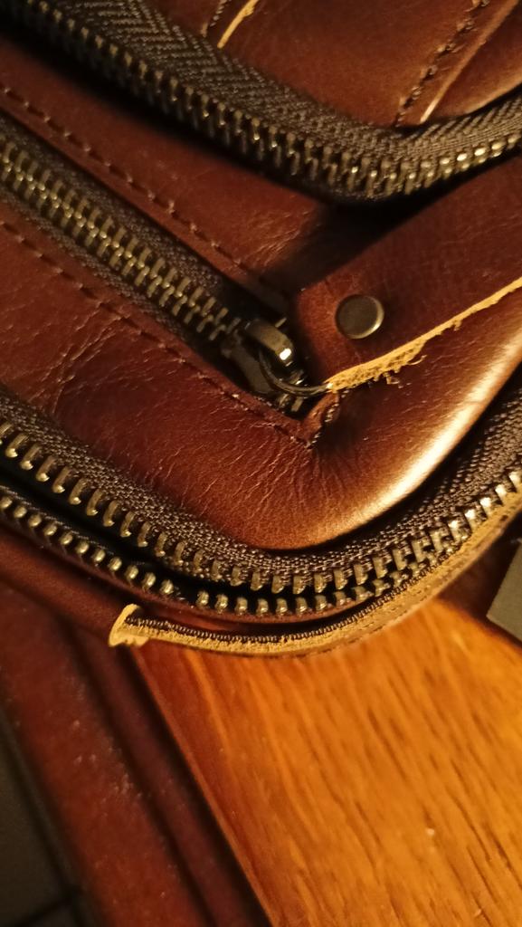 Defective central closure, risk of letting go at any time, very small size, a glasses case and a pocket book and the central pocket is full.... attached is the photo of the central closure... If you could do something.