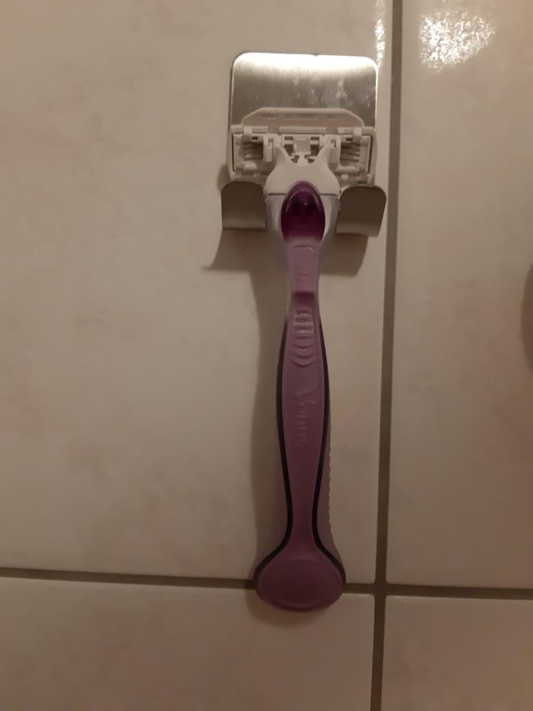 Love this shaver holder! It sticks wonderfully on the wall in the shower and is very practical indeed for holding a shaver. 🙂