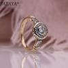 PATAYA Round Artificial Zircon Rings Rose Gold Color Multiple Sizes Exquisite Rings