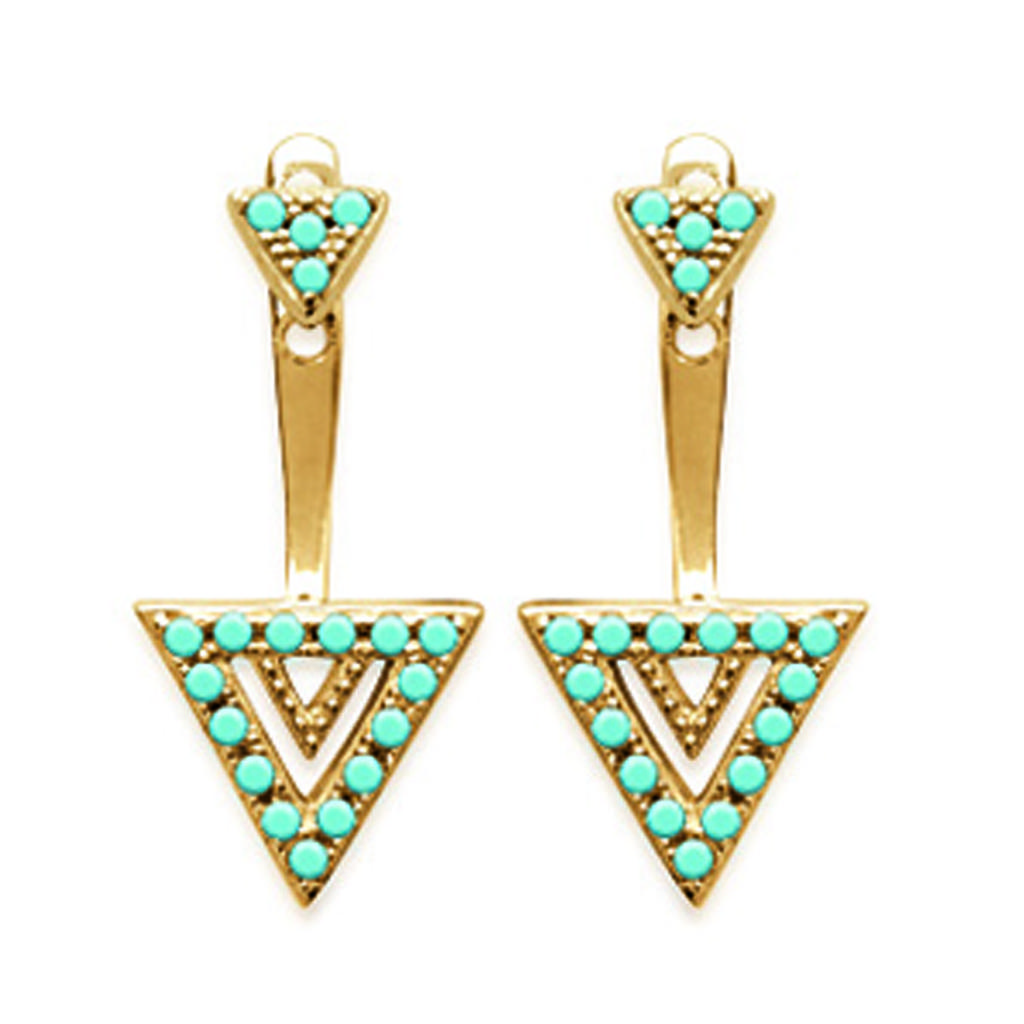 Les Trésors De Lily [N6249] - Gold Plated 'Navajos' Gold Turquoise Earlobes (Triangles) - 15x9 mm — buy online with free worldwide shipping!
