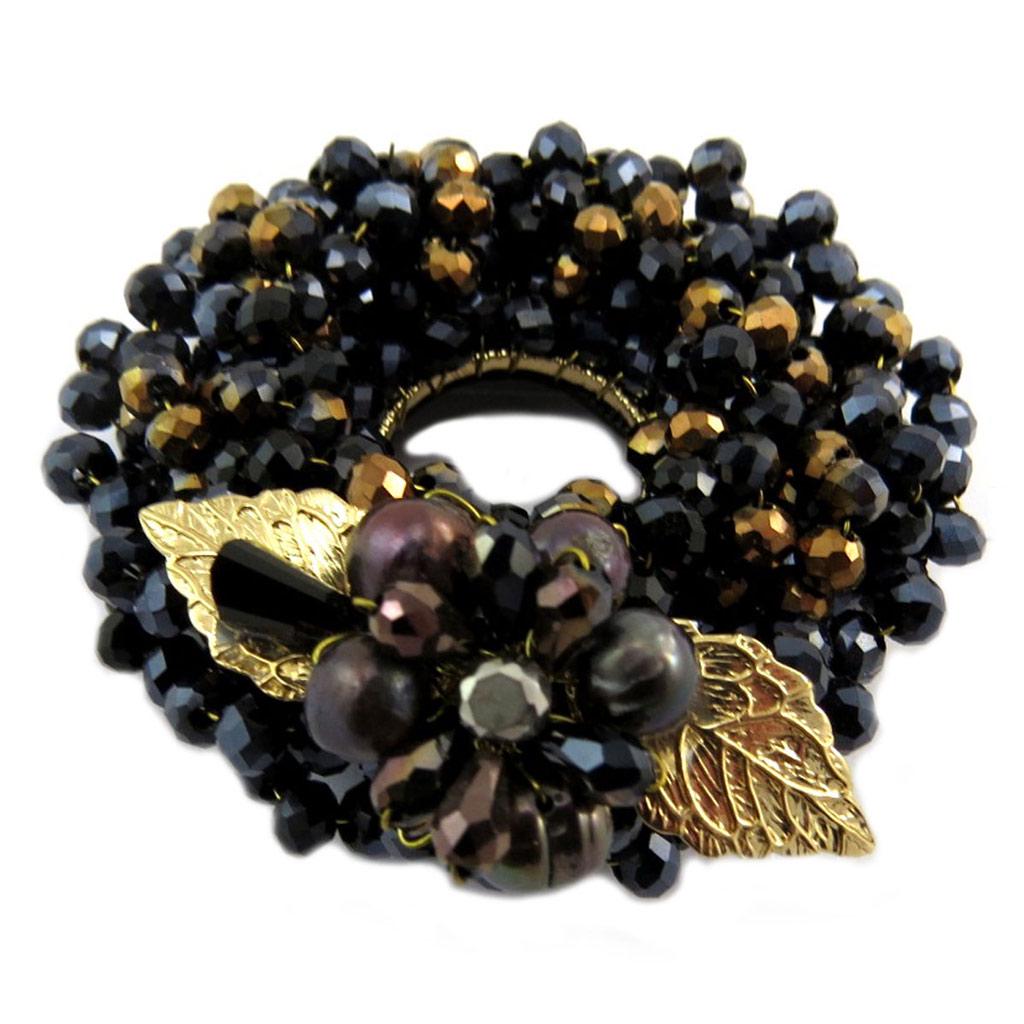 Les Trésors De Lily [P7595] - Designer Brooch 'Scarlett' black brown gold - 5 cm — buy online with free worldwide shipping!