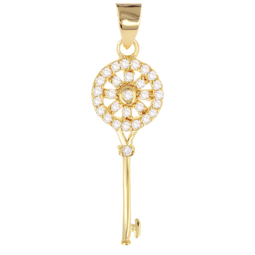 Les Trésors De Lily [Q2688] - Gold Plated Pendant 'Key To Possibilities' White Gold - 22x8 Mm