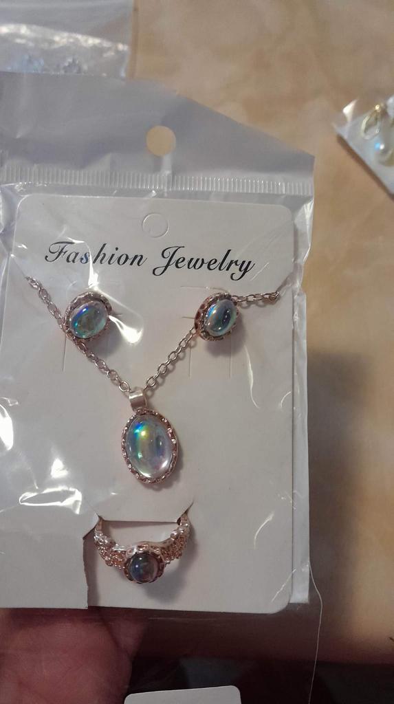 Necklace lovely but both earrings were broke. The posts on the earrings were not attached properly to the earrings so when you removed the 'back' off the earrings the posts came off.