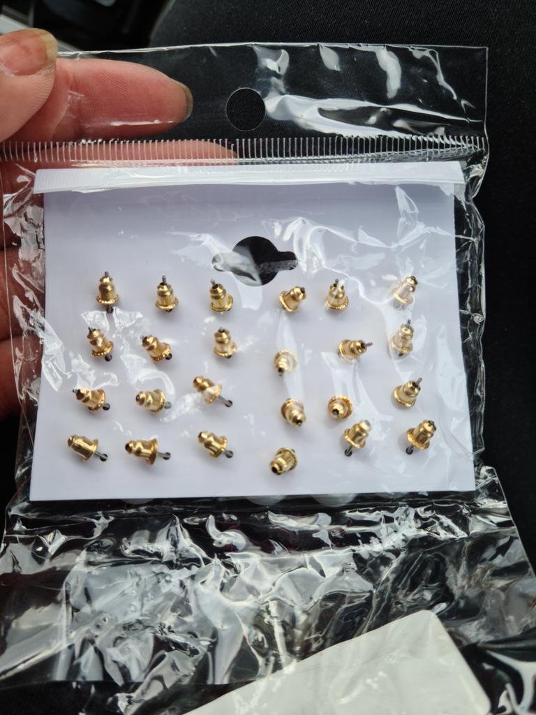 Plastic earring which is good if ur allergic to the others some of the holes had to be pushed through a bit more