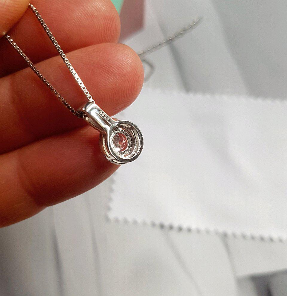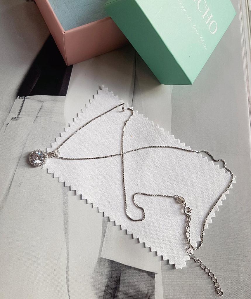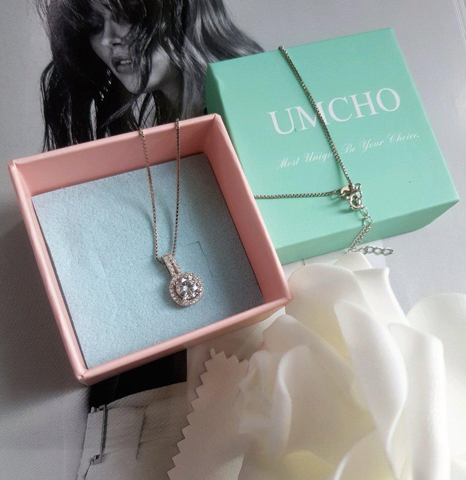 Another stunning masterpiece from UMCHO.This is very simple necklace but at the same time very elegant.The pendant has main AAA cubic zirconia stone in the middle,size is 6.5 x 6.5 mm,around tiny AAA clear zircon stones.The necklace is sterling silver with S925 stamp on it.The chain is 40cm with 5cm extension and lobster clasp.Came is beautiful presentation box and silver polishing cloth.Delivery 3 weeks.Happy Shopping!