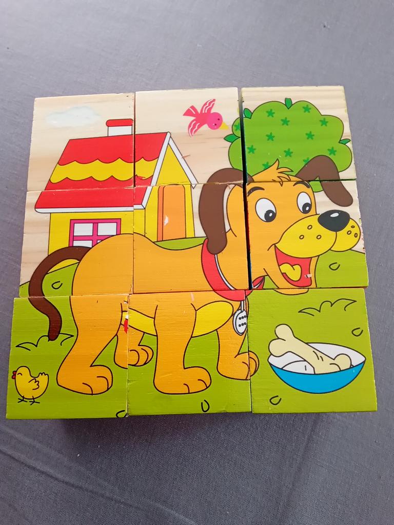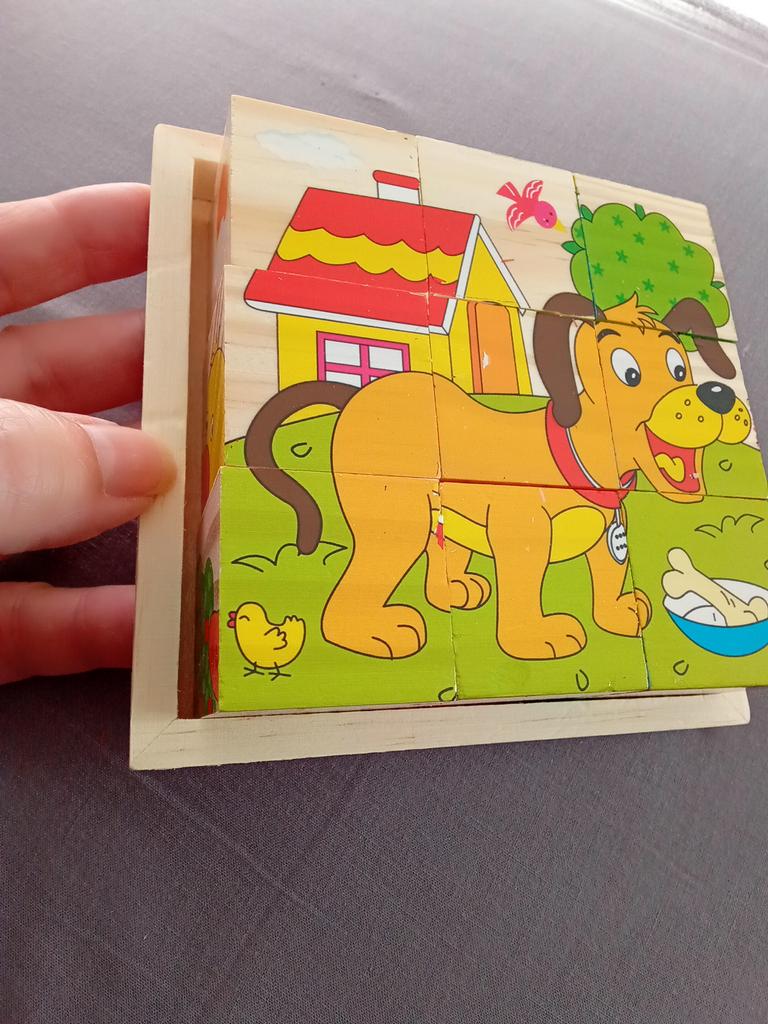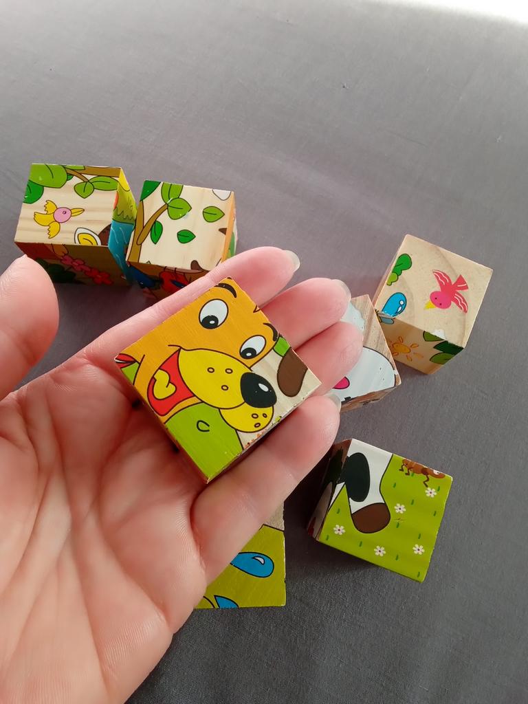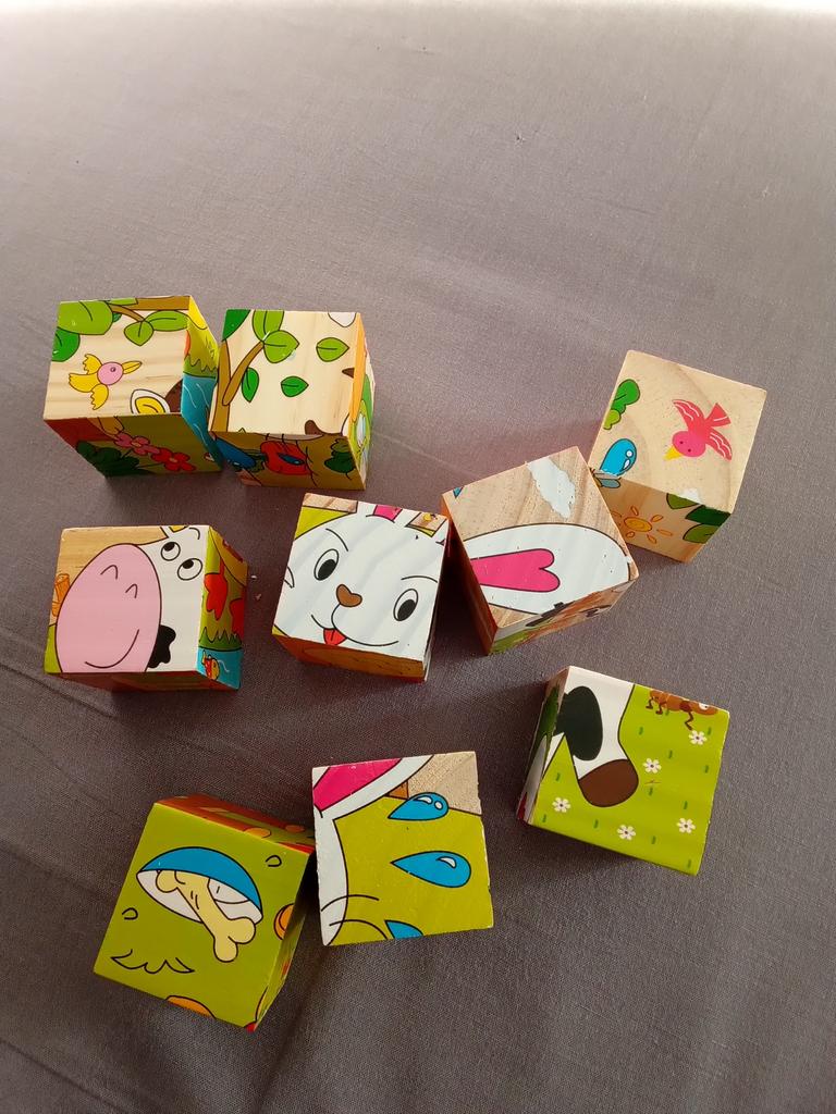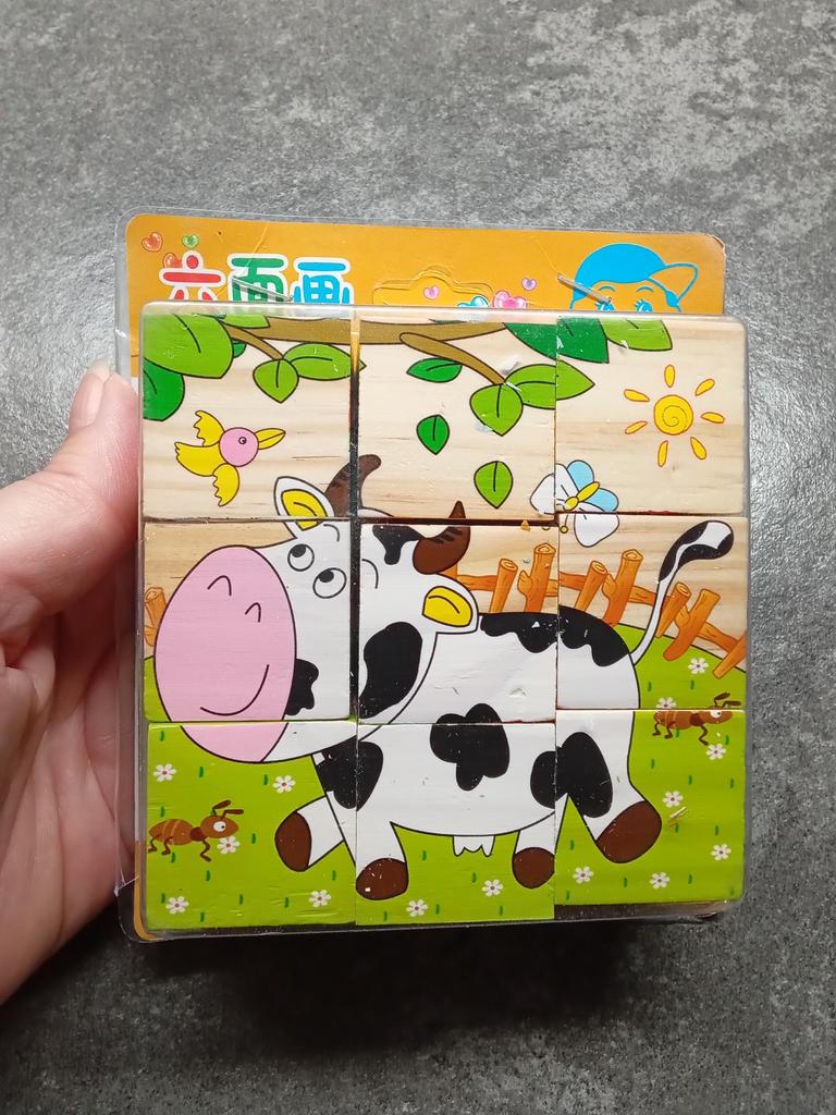 Building block made of nine painted wooden cubes. 👍🥰 It allows the child to make six farm animals. 💞💐