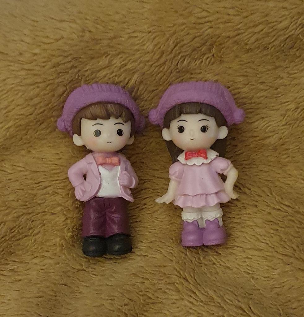 2PCS Exquisite Figurine Fairy Garden Decor Micro Landscape Decoration Couple with Hat Resin Miniature