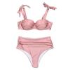 Women Lace-up Strap Bow High Waist Thong Bikini Set Swimsuit 2020 New Pink Padded Push-up Bra Bathing Suit Swimwear