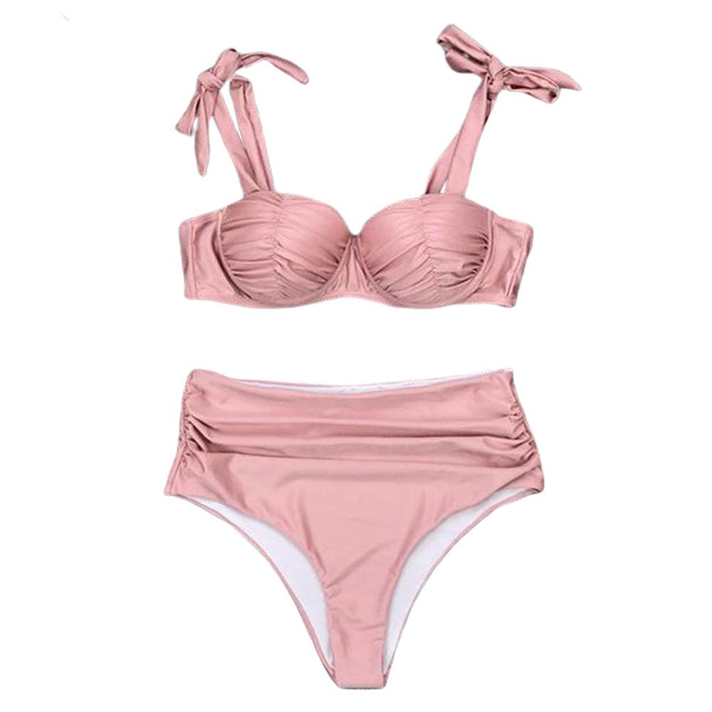 Women Lace-up Strap Bow High Waist Thong Bikini Set Swimsuit 2020 New Pink Padded Push-up Bra Bathing Suit Swimwear — buy online with free worldwide shipping!