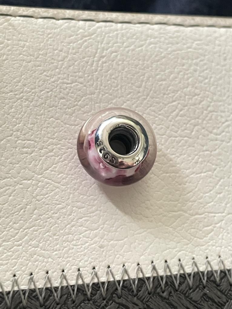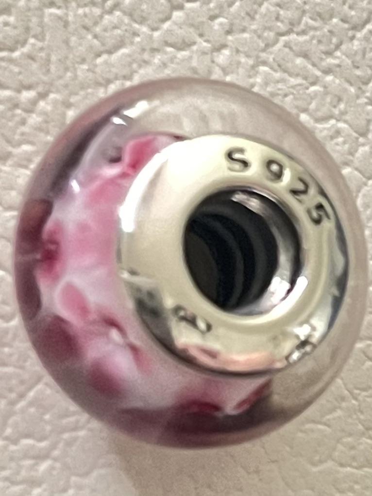 This charm is beautiful. The color is a pretty light pink and looks just like the photo. Silver is shiny. Charm has a nice weight to it. Imprint on both sides says S925. Charm is threaded like Pandora’s charms. I have all genuine Pandora charms and bracelet except for this pink one (looks like a Murano bead) and the dangling cat next to it (shown in photos). This was my first time ordering from Joom so I was a bit nervous about the quality. I ordered 3 charms total but I am still waiting for 1 more. The 2 that arrived are from the same seller. I got my order in 2 weeks (to USA) I love my Pandora charms so I was worried these might not be good quality but I am quite pleased with them. I don’t know how it will look over time but for now I like them. If you’re a Pandora fan, you’ll know these aren’t authentic but they seem very comparable in appearance and are more affordable!