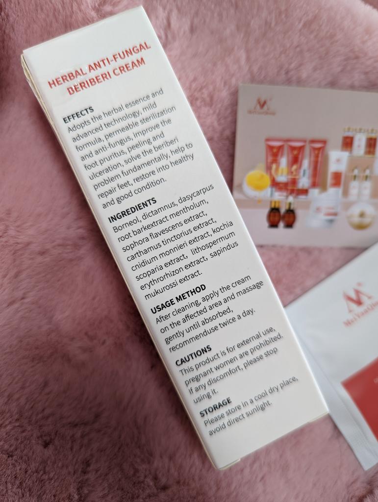 🌿FOOT CREAM, ANTI-FUNGIN🌿 The cream, suitable for all skin types. Contains various herbal extracts. All these ingredients combined with advanced technology make it an excellent moisturizer first and foremost. The manufacturer claims that the cream is formulated for 👍- eliminate the problem of beriberi (neuropathy due to vitamin B1 deficiency with pain in the limbs), 👍-improves itching 👍-antifungus. I often have dry feet in winter, which tend to crack and I see that thanks to this cream the situation is improving. Very delicate smell. No color on the skin. The cream does not leave the skin greasy but leaves it well hydrated. 🌺APPLICATION I applied the cream twice a day, morning and evening. I massaged until completely absorbed. You can see in the video. 🌺AMOUNT The tube contains 15 gr. This is a very limited amount of cream but I assure you that very little is needed. 🎁The seller gave me a gift with samples. 🎊🎉🎊🎉CONCLUSION The cream seems to me of excellent quality. It leaves the skin very hydrated and I think it will help my feet to be healthier and without calluses.
