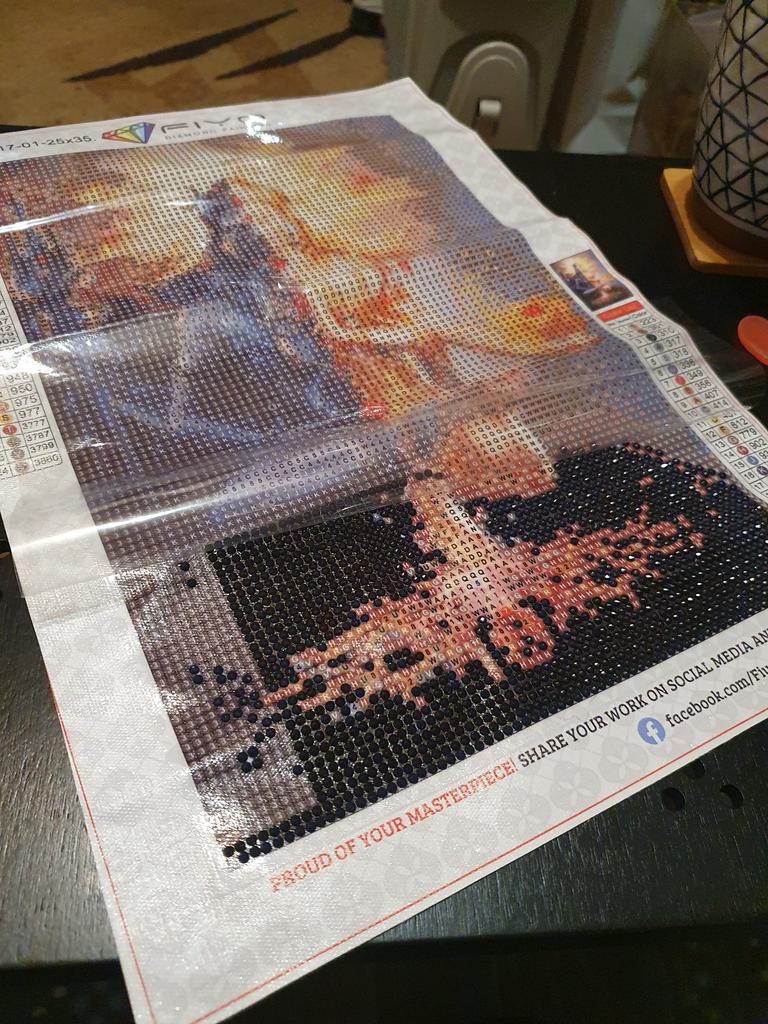 Great set. In the process of assembly. I like everything so far! In the set, in addition to the canvas itself, a pen for transferring crystals with two additional nozzles, a container for dividing crystals into rows, glue for the pen and a set of crystals themselves