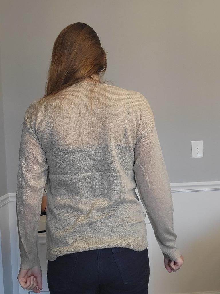 The knitted sweater made of acrylic ✴️ ♻️Delivery time: 15 days to Germany. ♻️♻️Scope of delivery: The scope of delivery includes a long-sleeved knit sweater in one size. The manufacturer specifies the following dimensions: for the chest circumference 96 cm, length 60 cm, sleeves 50 cm. It is only available in one colour. Normally I wear dress size 36-38. I weigh 55kg over 167cm. (90-62-90cm). The sweater fits me great!👌👌👌🚀 ♻️♻️The quality is very nice!🔝 The top is made of 100% acrylic, perfect for everyday wear. Easily combinable!🔝🔝🔝🔝. It will be great with jeans, shorts or even a skirt. For a casual style, I think the product is just great 👌👍. The sweater is slightly transparent 👍👍, but I like it a lot. 😊 I find it very seductive.🤗😁 ♻️On the material composition: 100% acrylic. The fabric is very comfortable on the skin. ♻️♻️ Conclusion: A super nice knit sweater 🥼, which has super nice quality. 🔝I am very happy to recommend. 5 Stars! Thank you Joom and the seller!😘😘😘😘