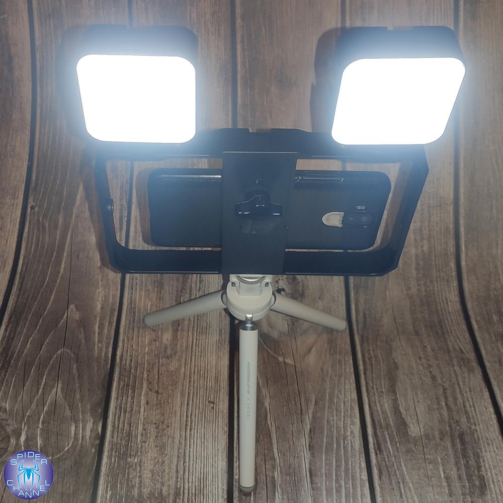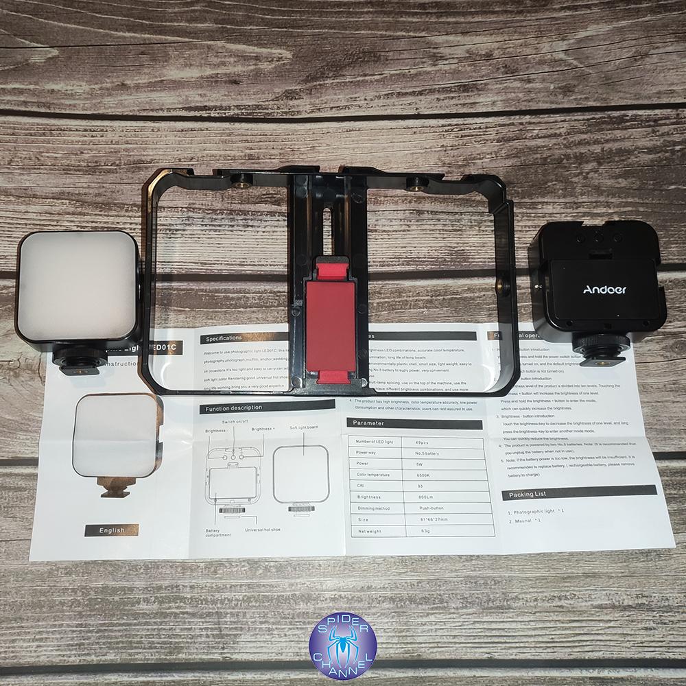 Mini LED Video Light 5W Photography Fill-in Lamp 6500K Dimmable, 2pcs + Handheld Smartphone