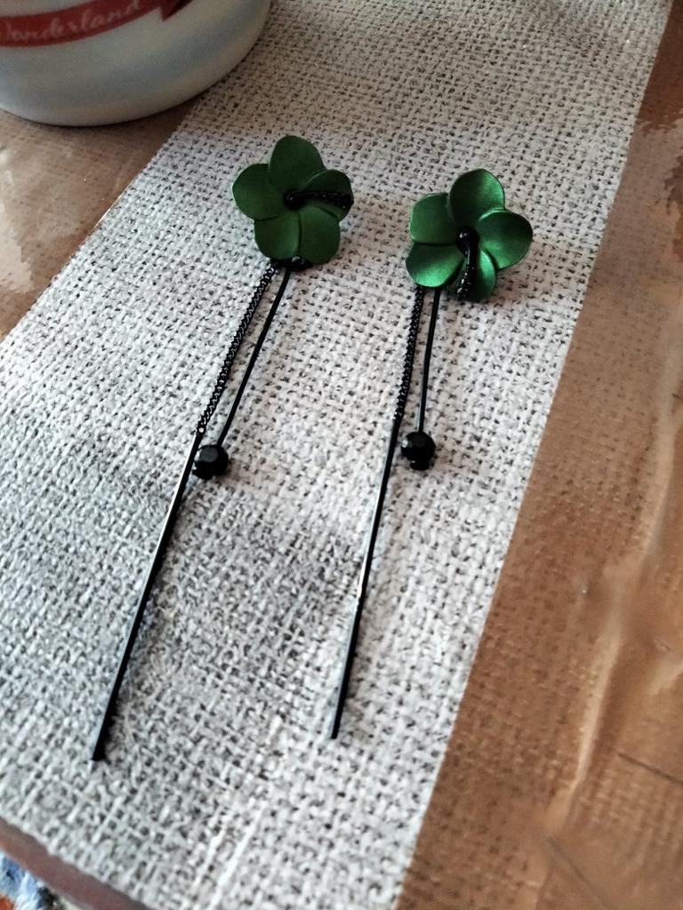 Women Earrings with Green Flower Tassels Retro Temperament Long Ear Style Ear Pendant — buy online with free worldwide shipping!