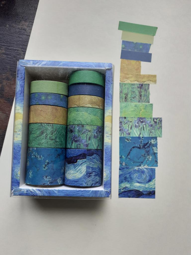 The shipping was very fast and the product was undamaged aside from the fact that one of the small rolls was missing unfortunately. The plastic lid was not attached to the box so the roll probably fell out when being sorted. Now to the product: the rolls are relatively small in size, meaning they don't have too much tape on them, but the quality is nice. The paper is very thin and the print light, though still opaque. The glue is fine, it sticks to paper pretty well. I have not tested it on other surfaces. The prints are nice and not too blurry, though the transition on the tape is not seamless! There are lines that seperate the different sections, so you need to keep that in mind when you want to use it for larger chunks. If you wish to peel off the tape again, you can do so without damaging the paper (great for washi tape art) Overall I can recommend the product, though the packaging is a little lacking since one of the tapes got lost.