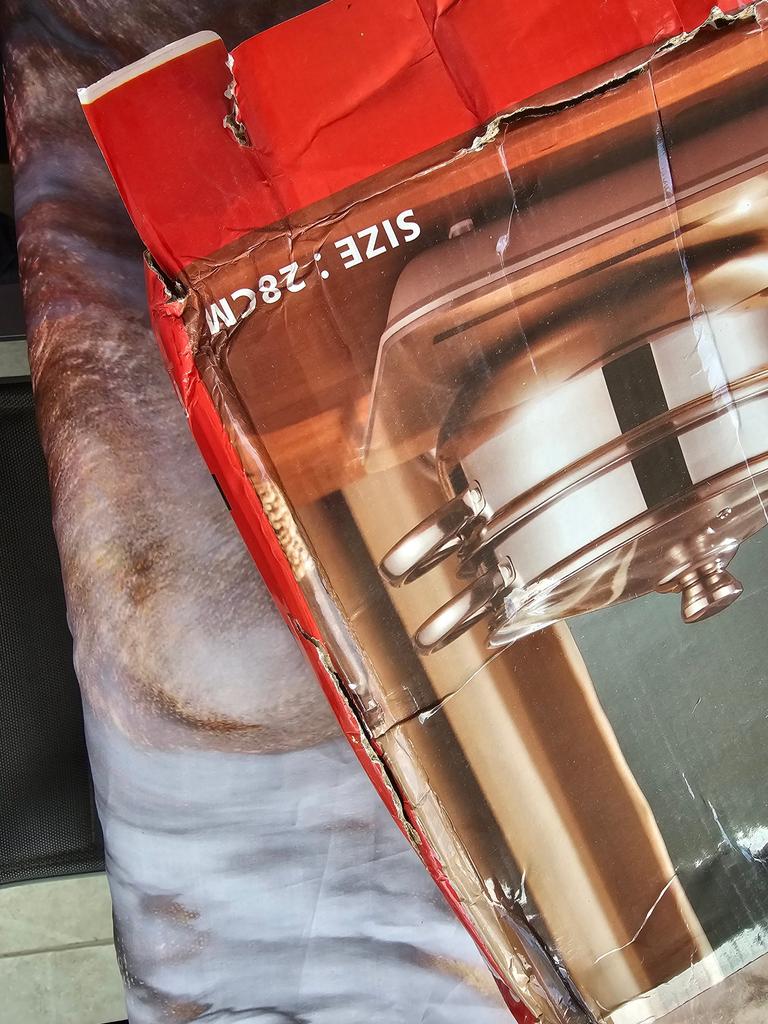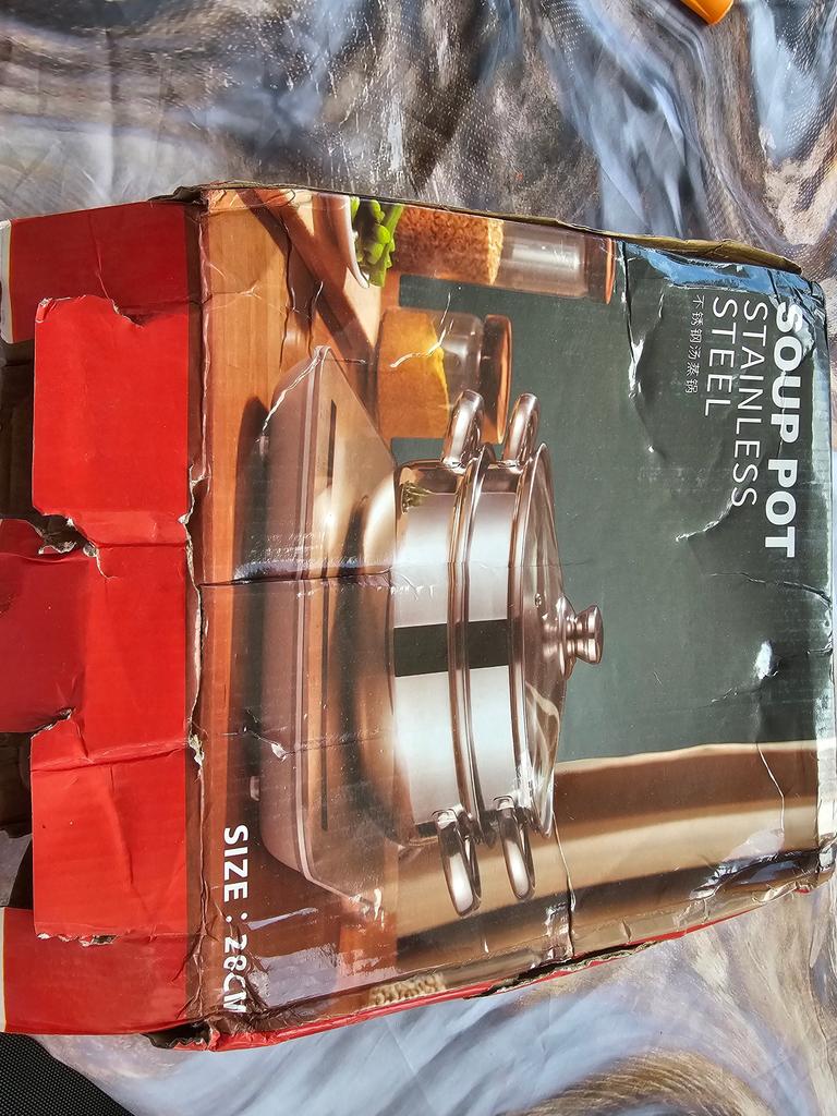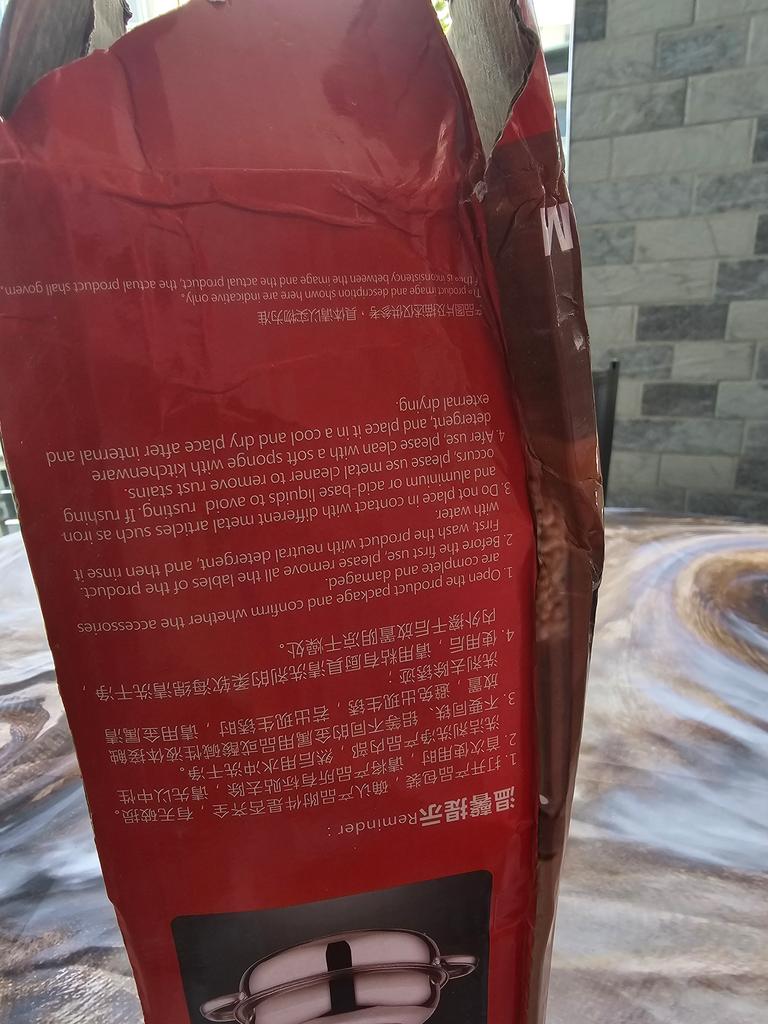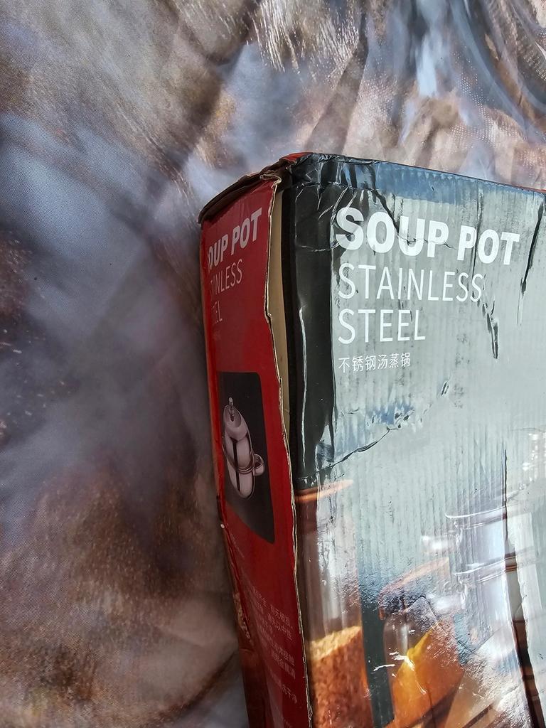 There are crushed areas on both pots, which were hit. The metal the pots are made of is very thin. The entire packaging arrived wrinkled and partially torn. It also took a long time to arrive, compared to other things I ordered.