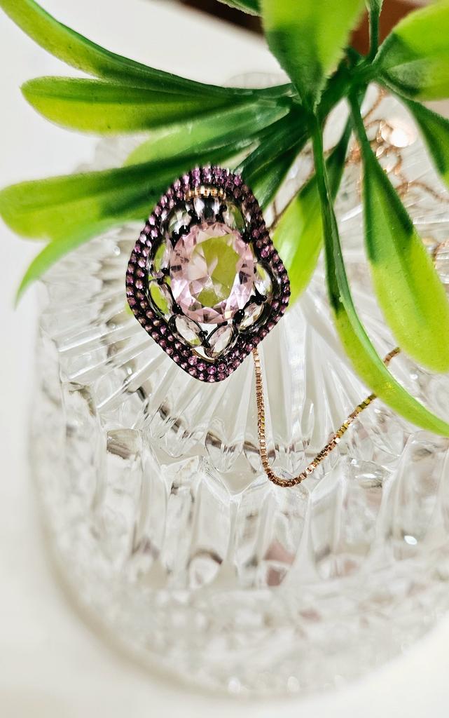 Umcho Oval Nano Pink Moganite Jewelry Sets Gemstone Pendant Necklace Rings Drop Earrings 925 Sterling Silver For Women Best Gift
