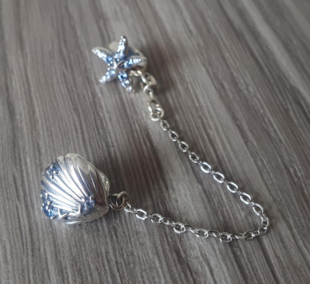 WOSTU Starfish Stopper Charms 925 Sterling Silver Tropical Starfish & Shell Safety Chain Charms — buy online with free worldwide shipping!