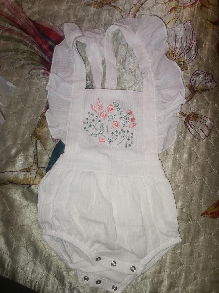 I declare myself an absolut fan of this Baby girl romper (set with a size adjustable headband)! 😍 Very light, airy, soft and cute model! Good quality fabric, good sewing entirely (inclusively the chest flower sewing). BUT, be aware at the size, it is smaller than being declared by the seller; Size Up! choose a bigger size than the one you want for your baby (for example, I bought this for 12-18 months, but I could hardly dress up my daughter at 12 months, for the 1st year birthday photosession)📸🎀 🧸 5 ⭐️ to this romper, even if we dressed it up just once!✨....