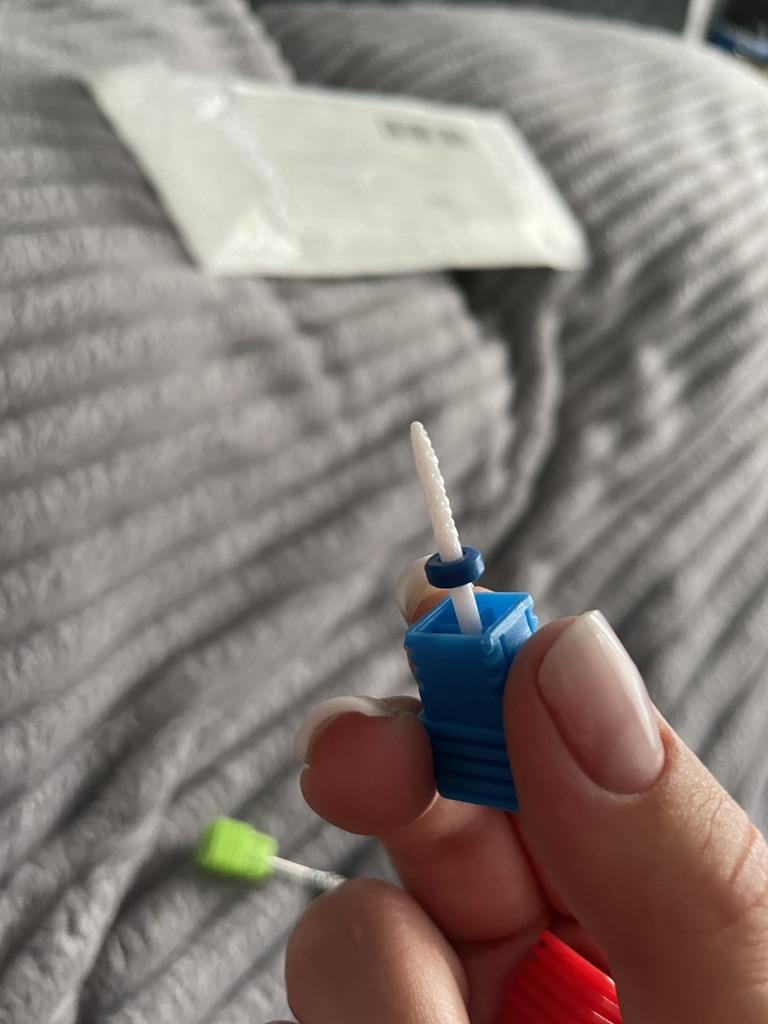 Intersectant stripes of the drill head can help you polish and reshape your nails.