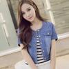 Summer Women's Denim Shorts Blue Jacket Ladies Korean Short-sleeve Loose Fit Slim O-Neck Thin Shawl Denim Caot Thin Tops
