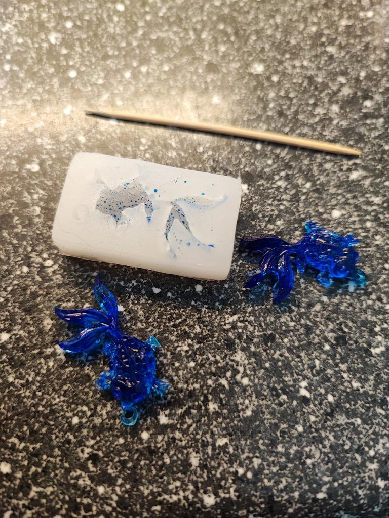 I was a little shocked when I saw the tiny little fish. I wanted small ones, but not quite so small. The whole shape is just under 3.5 cm in size, the fish is about 2.9 cm in size, just right for my project.