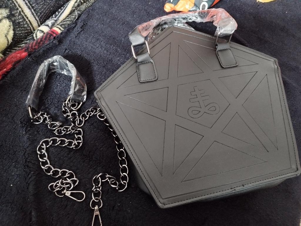 JIEROTYX Pentagram Punk Darkness Gothic Star Handbag Women Girl Black PU Soft Leather Shoulder Bag With Chain High Quality — buy online with free worldwide shipping!
