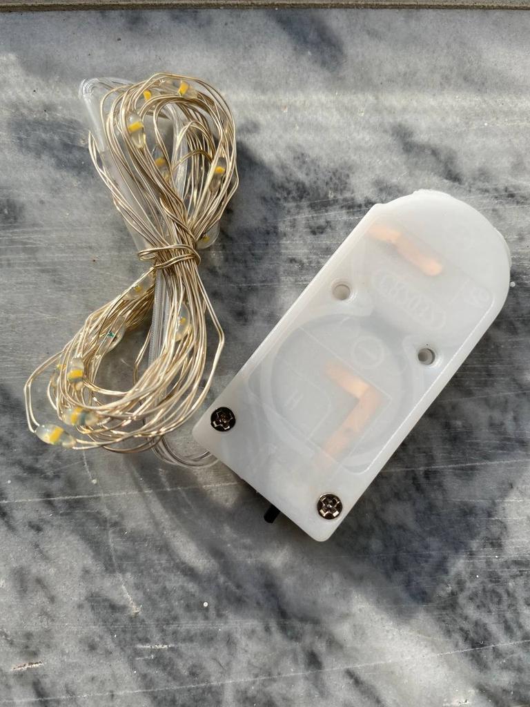 This item is only half usable. The fairy lights come in two parts, only approx. 1 meter of the two meters is lit (see photo).