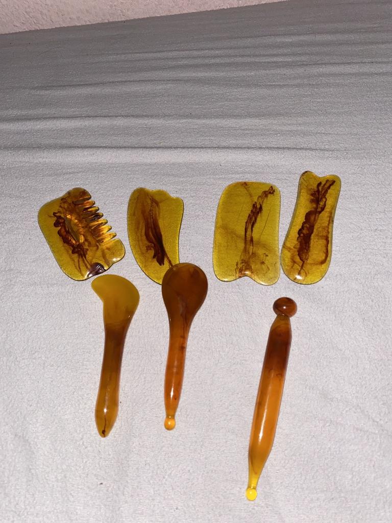 7pcs Natural Resin Amber Massage Scraping for Face Neck Gua Sha Scraper Therapy — buy online with free worldwide shipping!