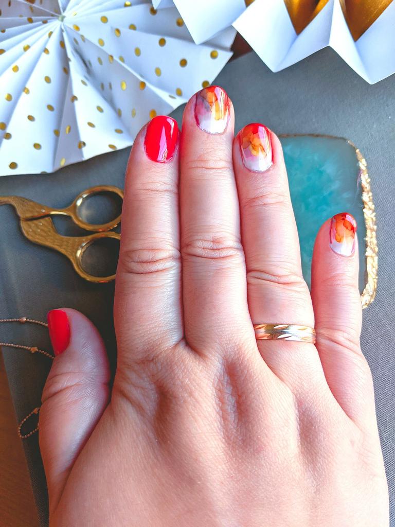 🌸 ROSALIND UV gel nail polish 💅 First of all I love this brand, it has high quality products. I had watercolor nail polishes and i think they look best when they are applied on white. So i ordered this white gel nail polish. There are so many colors to choose from, 40 colorsto be exact. I have #B001 (white), # B012 (red) And I think all look very good. But my favorite is #P171 😁 You need UV/Led lamp to cure it. HOW TO APPLY: 1) Apply base coat 2) Cure with UV or LED lamp 3) Apply color. 4) Cure with UV or LED lamp 5) Apply top coat Total amount is 7 ml. I love them so much, i definitely recommend them. This is my first try with watercolor nail polish and i think i nailed it 👍😁. By the way I want to hear your thoughts which one you liked the best, hand with red nail polish or white?