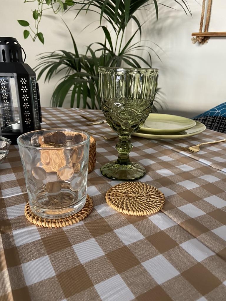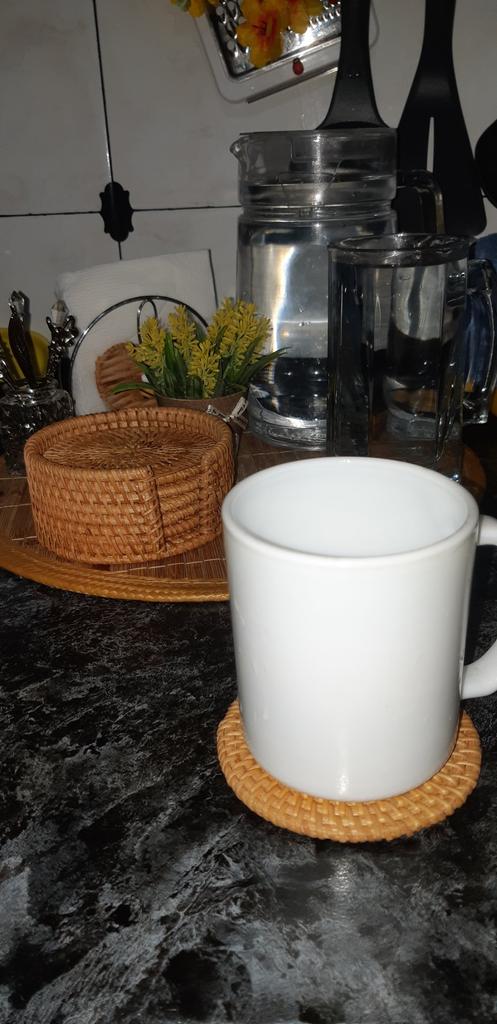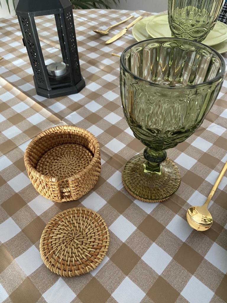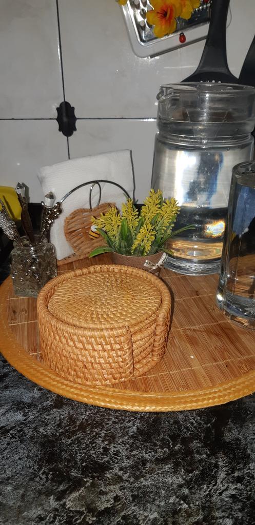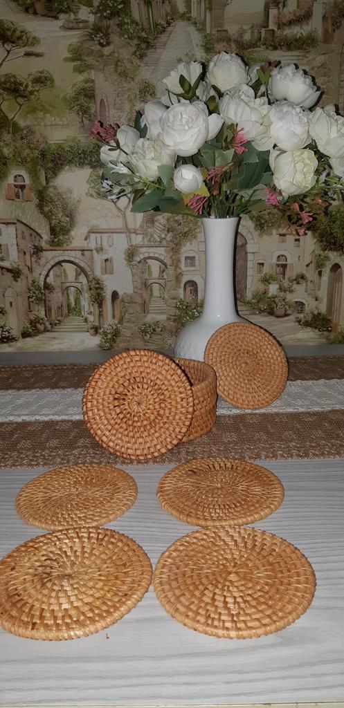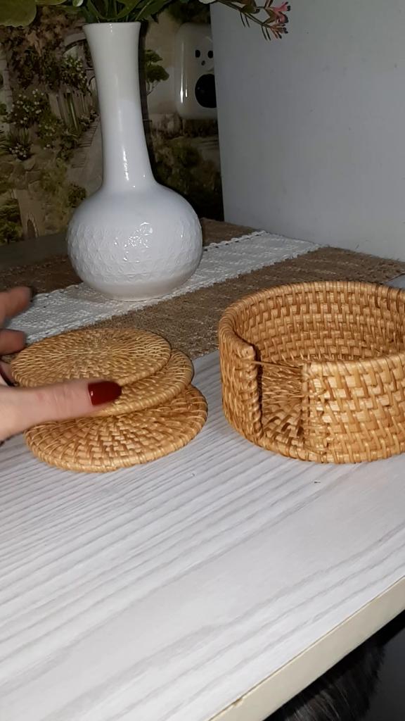 Jute coaster pack, perfect for water glasses, good diameter, they are not too big. It comes as a pack to collect them. Decorative and very useful product we took two packs and we are delighted. I would definitely recommend the product.
