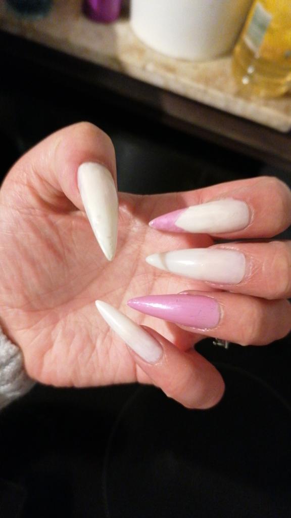 Good nails. Strengthened nails with gel and glued on false nails. Which I bought separately.