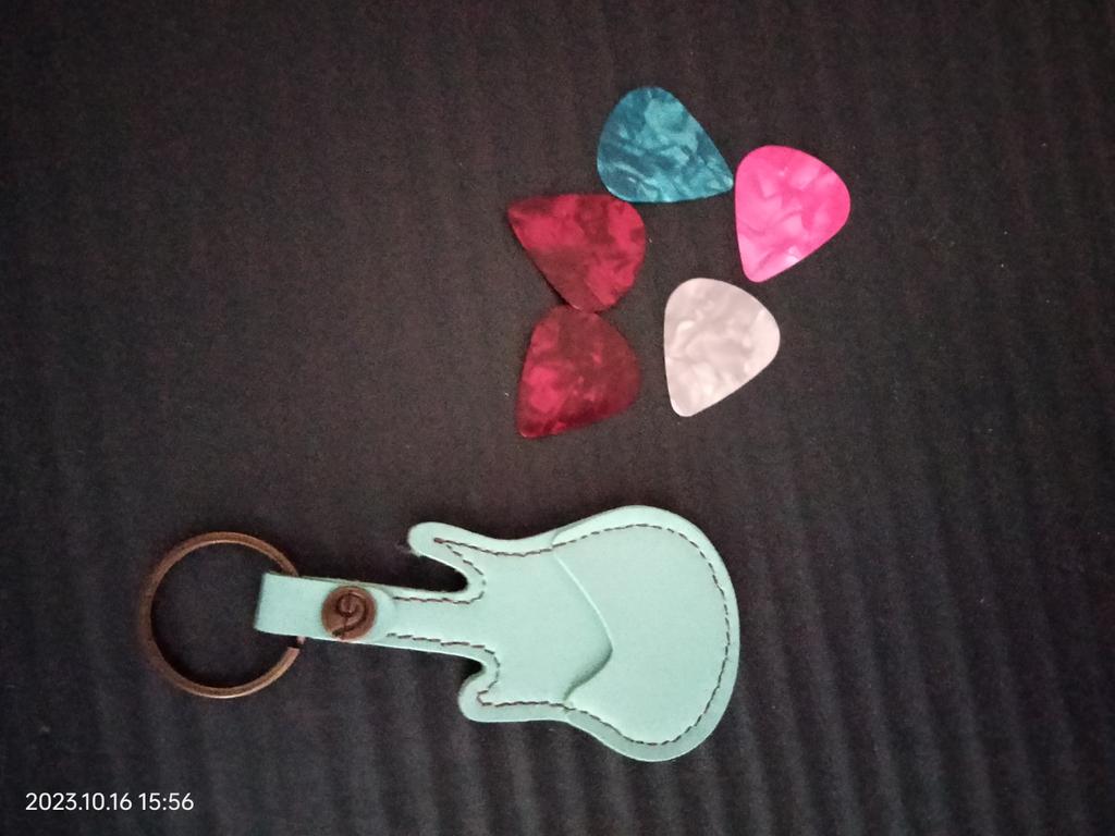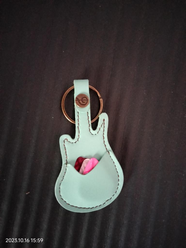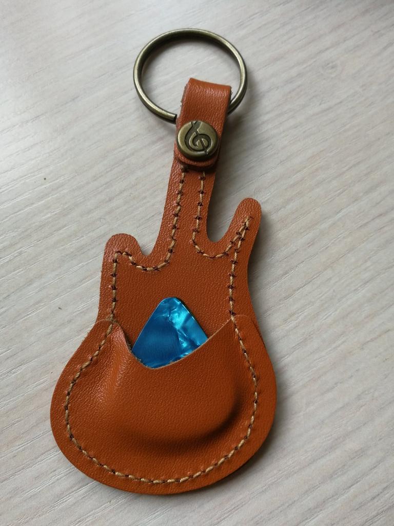 Genuine Leather Guitar Picks Holder Key Chain with 5 Picks Khaki / Green Optional — buy online with free worldwide shipping!