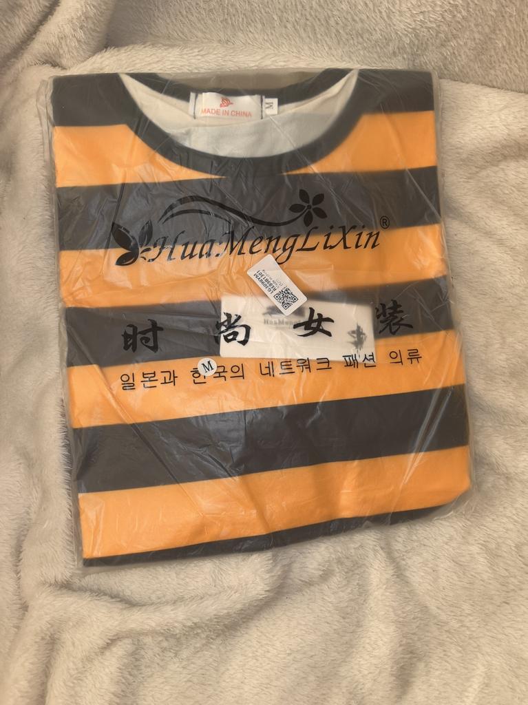 Women Yellow and Black Striped Round Neck Collar Loosen Half Sleeve T-Shirt Casual Blouse Tops — buy online with free worldwide shipping!